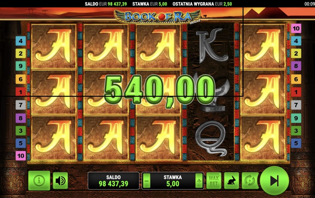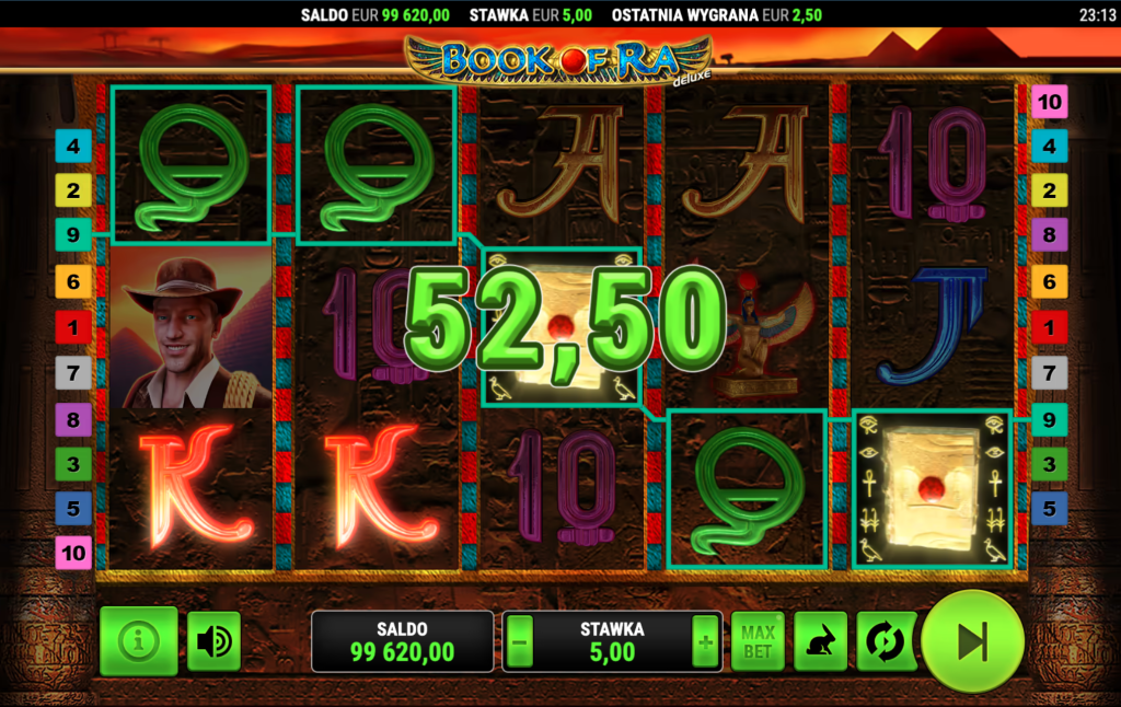 Bei einem Einsatz von 5 € pro Spin wirken sich die Multiplikatoren der Symbole in Book of Ra deutlich stärker aus als bei kleinen Einsätzen.